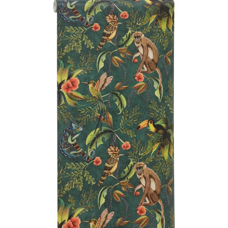 Vliesbehang met tropische print. Licht afwasbaar. Voorzien van het FSC keurmerk. 10 meter per rol.