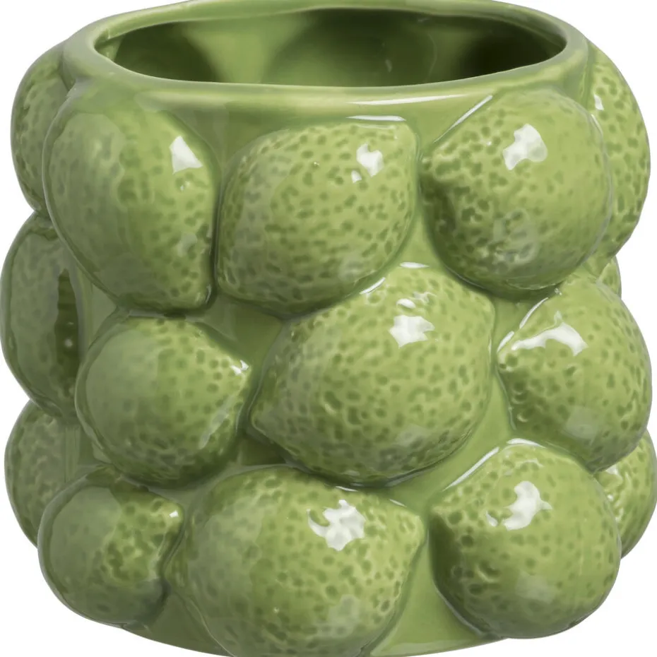 Deze sfeervolle bloempot voor binnen in een warme groene kleur brengt een vleugje mediterrane charme in elke kamer. Geïnspireerd door de frisse tint van een Citroen, straalt deze bloempot zomerse vrolijkheid uit. Gemaakt van aardewerk, is deze binnen bloempot ideaal voor bloemen, kruiden of kleine planten, en een stijlvolle toevoeging aan elk interieur.