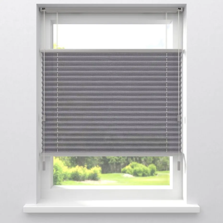 Transparante enkele plissé grijs gemêleerd met structuur. Verkrijgbaar als top down, top down bottom up of top down bottom up gespannen. Een top down bottom up gordijn kan zowel aan de bovenkant als de onderkant worden uitgevouwen voor volledige controle over de gewenste lichtinval en privacy. Een gespannen plissé is zeer geschikt voor draaikiepramen omdat de stof goed op zijn plek blijft. Op maat te maken en volledig naar wens samen te stellen. Bepaal zelf de kleur van het systeem en kies uit een bijpassende koordhanger van kunststof, rvs of zwart metaal.