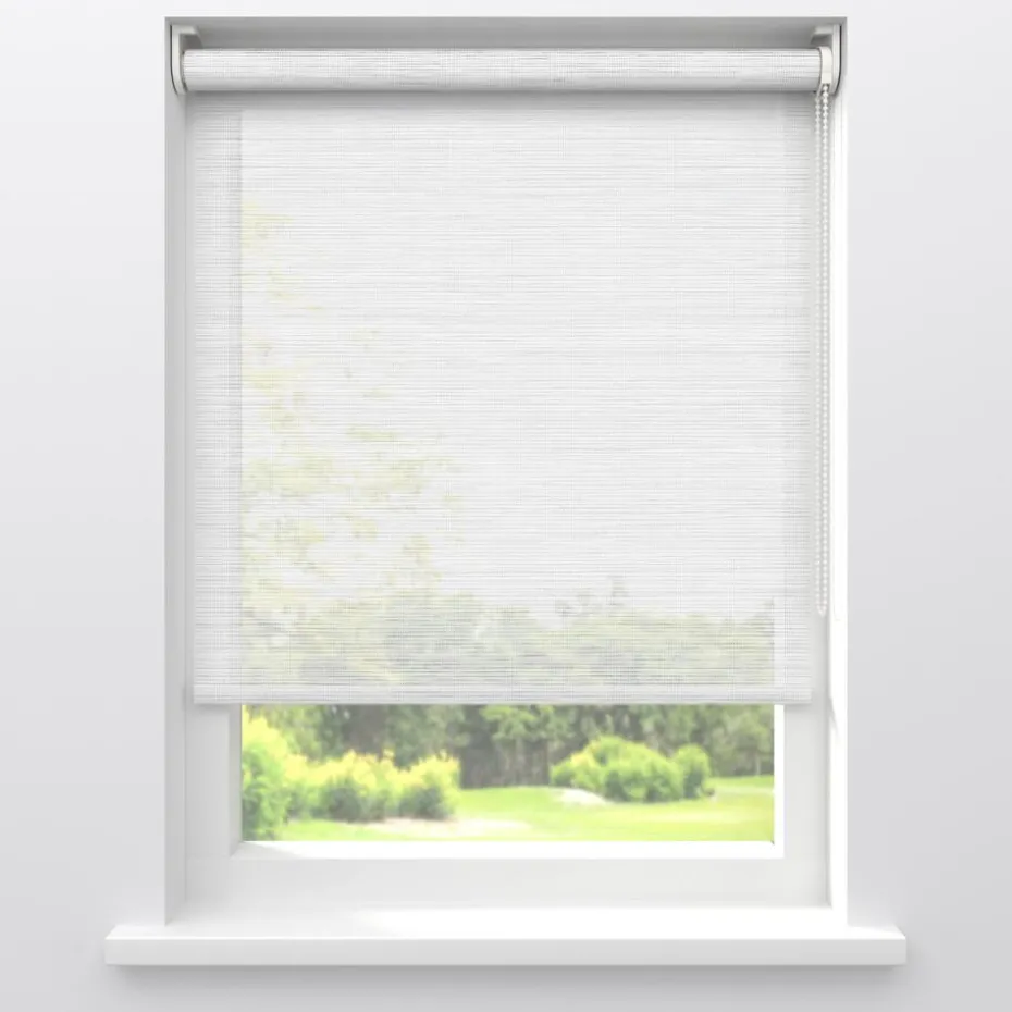 Transparant rolgordijn wit met grove weefstructuur. De stof laat veel licht door en filtert lichtinval op een natuurlijke manier. Zo behoud je de verbinding met buiten en creëer je veel sfeer. Op maat te maken en volledig naar wens samen te stellen met een ruime keuze uit accessoires en uitvoeringen. Elektrische bediening en zijgeleiding is mogelijk. Ook geschikt voor draaikiepramen. Eenvoudig af te nemen met een vochtige doek.