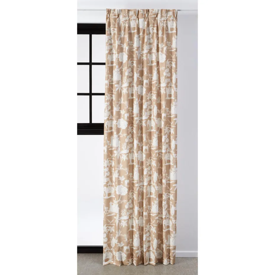 Lichtdoorlatende gordijnstof van 100% naturelkleurig katoen met botanische print. De luchtige ademende gordijnstof is sterk, slijtvast en valt soepel. De stof is kreukgevoelig. 140 cm breed.