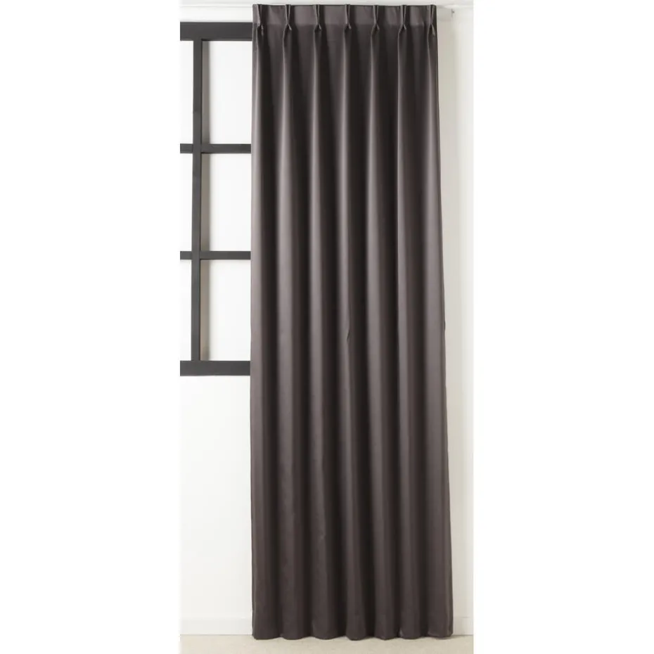 Gordijn Lucas is een antraciet kleurige stof met een subtiele glans. Het materiaal is 100% polyester, hierdoor is de stof behoorlijk slijtvast en heeft het een lange levensduur. Daarnaast krimpt het niet en is het kreukherstellend.