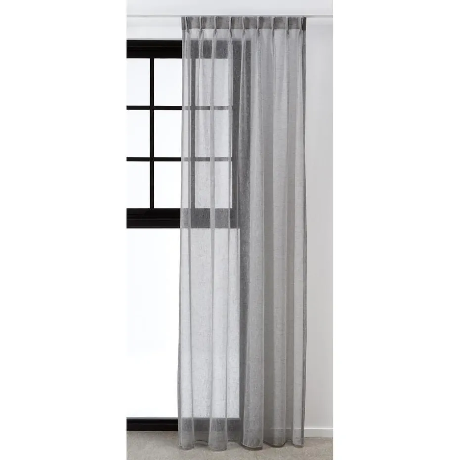 Transparante gordijnstof grijs met subtiele kleurmelange en natuurlijk uitstraling. Soepel. 300 cm.