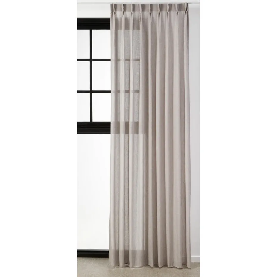 Inbetween William Taupe is een transparante gordijnstof met een fijngeweven structuur, gemaakt van 80% polyester, 10% acryl, 5% katoen en 5% linnen. Door de mix van materialen heeft William een natuurlijke uitstraling in een linnenlook. De stof valt soepel en is luchtig. Behoefte aan meer licht maar heb je wel de behoefte aan de nodige privacy? Kies dan voor een inbetween in de woonkamer en combineer deze met een mooi verduisterend overgordijn. 300 cm hoog.
