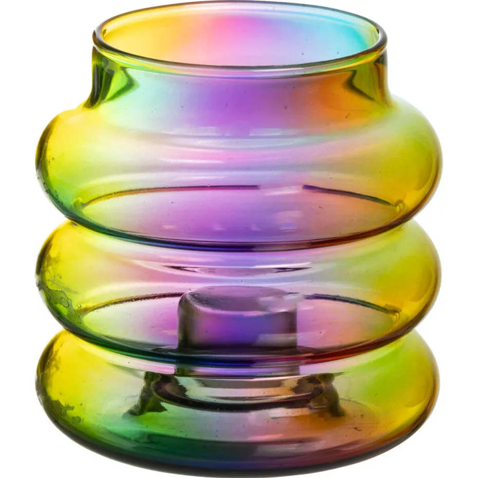 De Busseto kandelaar is een echte blikvanger dankzij de multicolor uitstraling. Deze stijlvolle glazen kandelaar combineert moeiteloos een moderne look met een fijne sfeer. Perfect om een warme gloed in je interieur te brengen, terwijl het eigentijdse design iedere ruimte verrijkt.