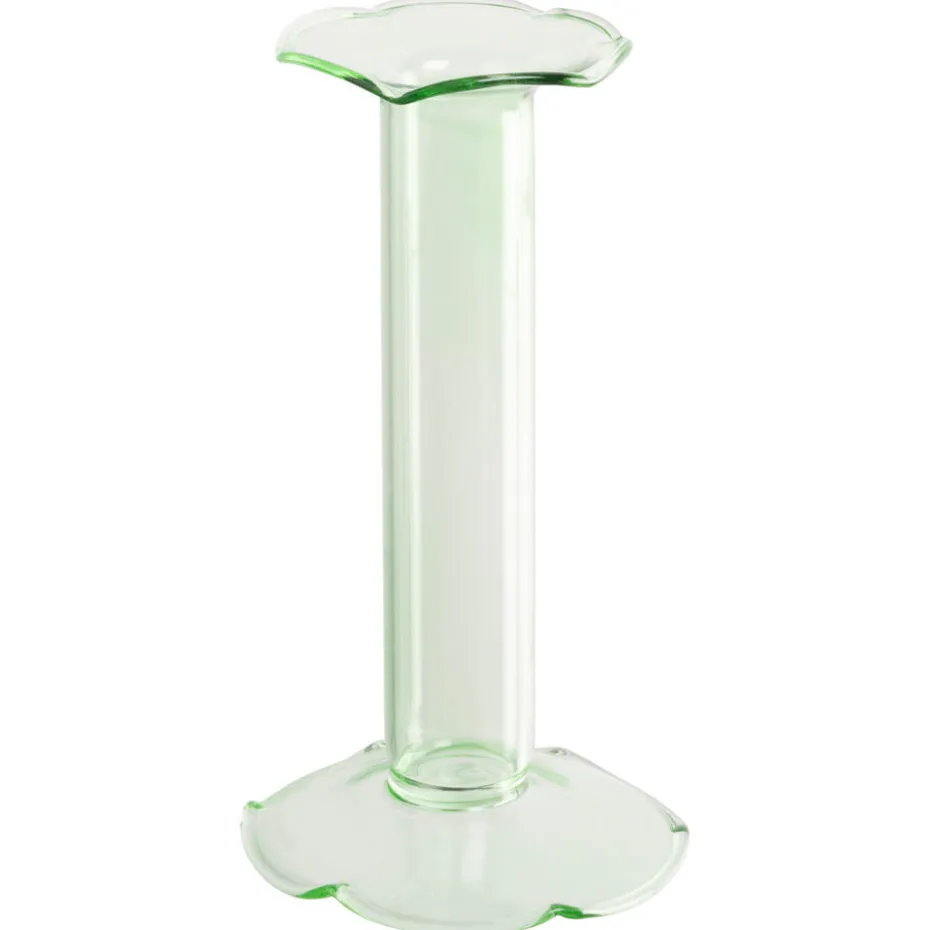 De groene Domont kandelaar brengt stijl in huis. Deze glazen kandelaar is perfect geschikt voor één dinerkaars en voegt elegantie toe aan elke ruimte. Of je nu een intieme maaltijd organiseert of simpelweg je interieur wilt opfleuren, deze sfeerlichthouder creëert direct een warme ambiance. Maak het gezellig in huis en geniet van het sfeervolle licht dat deze kandelaar uitstraalt. Een stijlvolle keuze voor ieder interieur!