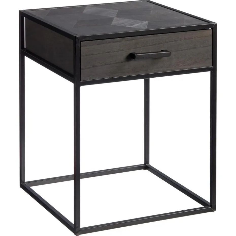 Modern kastje van zwart metaal en mozaïek blad. 40x40x50 cm (lxbxh).
