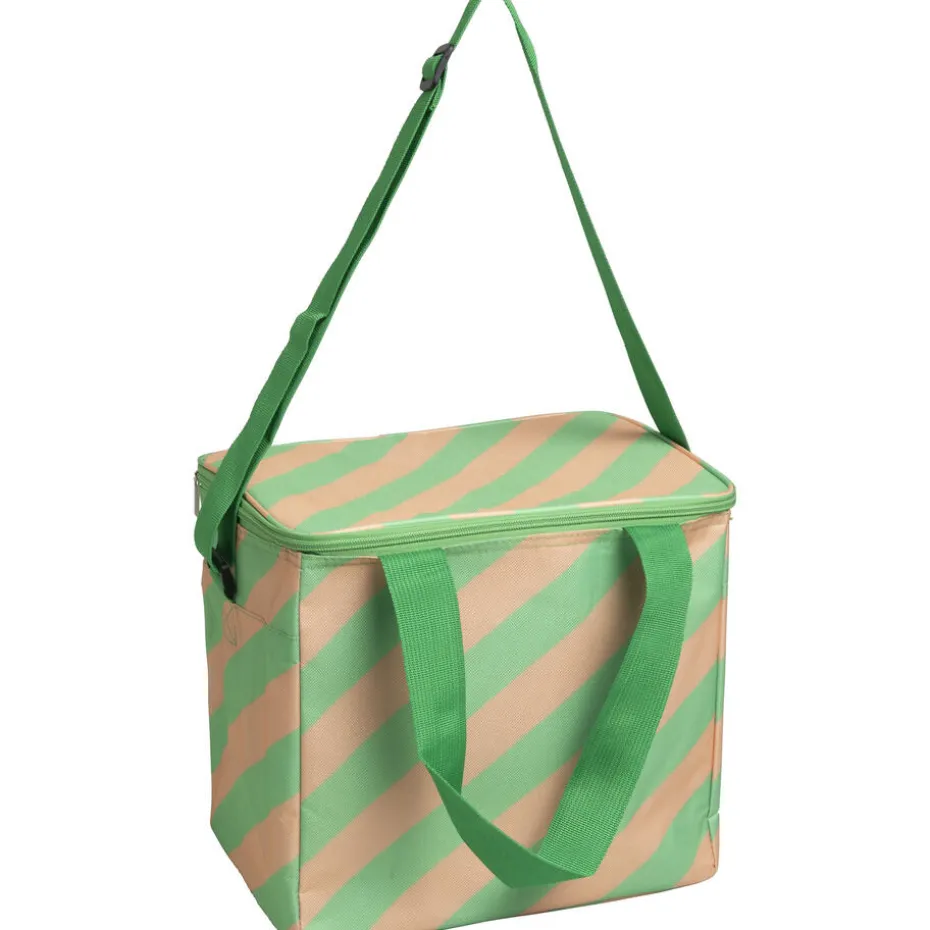 Ga stijlvol picknicken met deze groen / oranje gestreepte koeltas een must-have voor park tuin en stranduitjes. Met een handige ritssluiting verstelbare schouderband en handvat is deze tas gemakkelijk mee te nemen perfect voor onderweg. Gemaakt van duurzaam polyester en met afmetingen van 30x21x27 cm (lxbxh) biedt het voldoende ruimte voor al je picknickbenodigdheden. Kies voor praktisch en trendy met deze koeltas ideaal voor een ontspannen dag buiten.