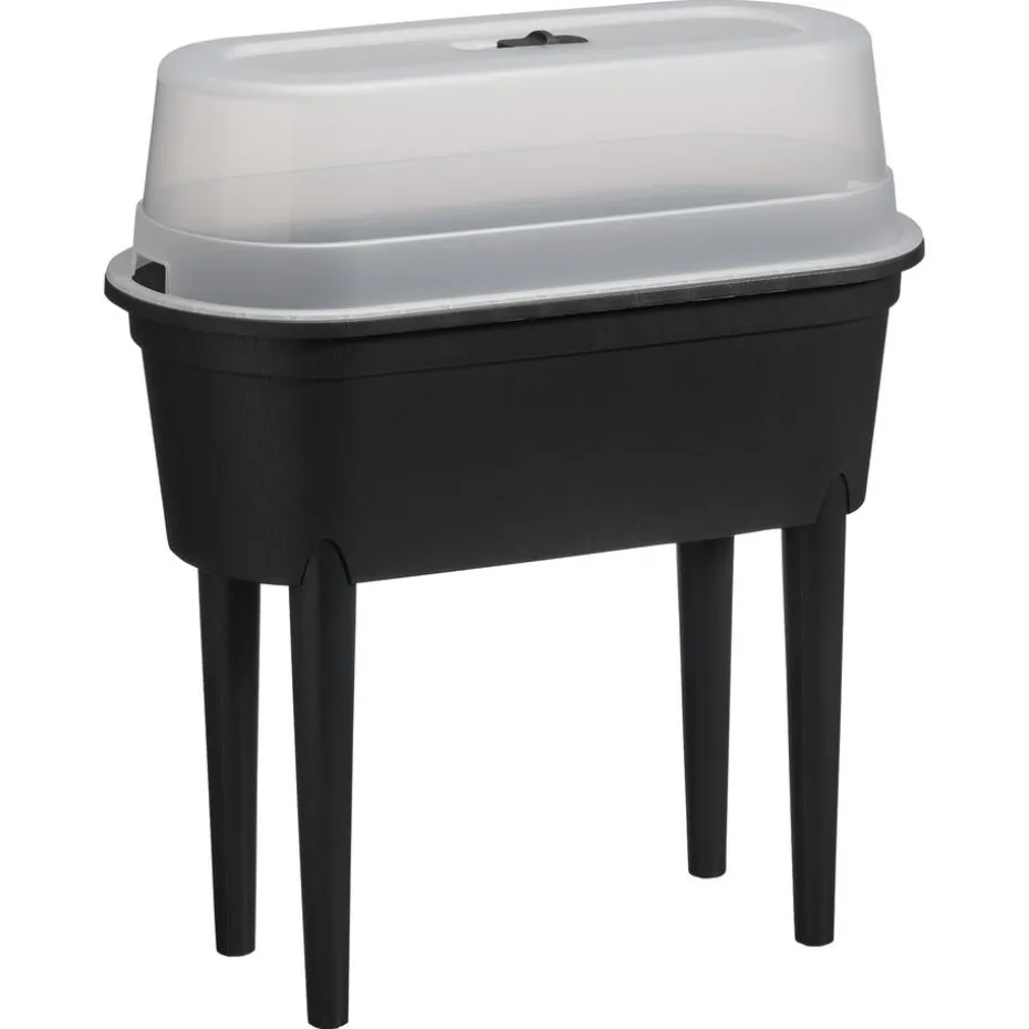 Deze zwarte kweektafel heeft een afmeting van 78x38x28 cm (lxbxh). Gemaakt van duurzaam kunststof biedt deze tafel een leuke en leerzame bezigheid voor tuinliefhebbers. Creëer een bloeiende oase en beleef plezier aan het kweken van je eigen planten met deze praktische en stijlvolle toevoeging aan je tuin.