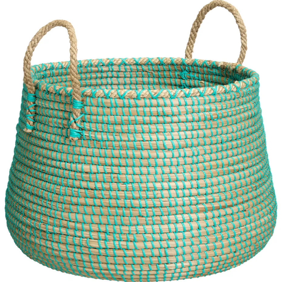 De ronde Efford opbergmand is een sfeervolle toevoeging aan elk interieur. Deze mand gemaakt van zeegras heeft een prachtige combinatie van een blauwe kleur met naturel details en is ideaal voor het opbergen van spullen. Met twee handige handvatten is hij makkelijk te verplaatsen en perfect voor de kinderkamer slaapkamer of woonkamer. Een stijlvolle en praktische oplossing voor je opbergbehoeften!