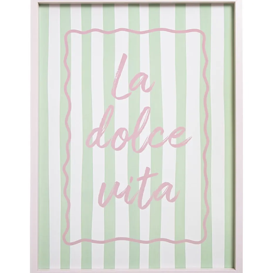 De La Dolce Vita poster is een rechthoekige papieren poster van 45×60 cm in een vrolijk en sfeervol ontwerp. De groene accenten zorgen voor een warme uitstraling. Het frame is gemaakt van MDF en is voorzien van een glasplaat, waardoor de poster stijlvol en goed beschermd is.