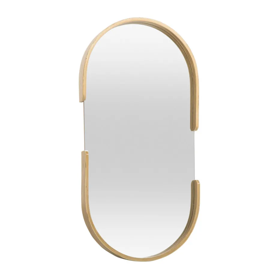 Moderne spiegel Azeize heeft een houten frame. De sfeervolle spiegel heeft een afmeting van 71×35 cm (lxb).
