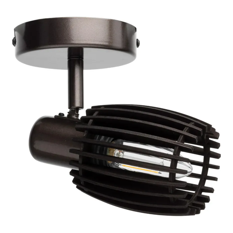 Spot Apula in bronzen kleur is een eigentijdse en sfeervolle spot. De spot is verstelbaar zodat je zelf de vrijheid hebt om het te licht te wijzen naar een punt waar jij extra verlichting nodig hebt. De spot is gemaakt van metaal en hout waardoor hij een unieke uitstraling heeft en hij lang mee gaat. De spot heeft een E14 fitting (lichtbron niet meegeleverd).