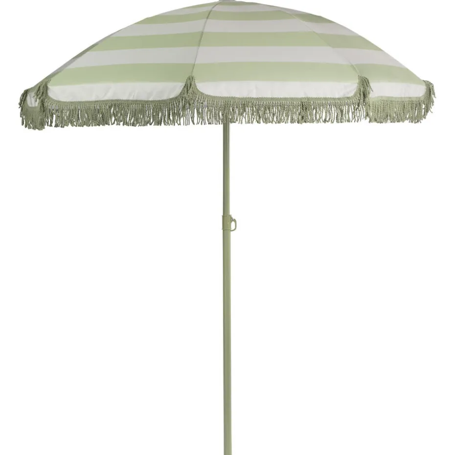 Strandparasol Modica is een stokparasol met een polyester doek. Het polyester doek heeft een wit met groen streeppatroon en sfeervolle franjes langs de rand. De parasol heeft een diameter van 180 cm en is 190 cm hoog. Dus ben je op zoek naar een sfeervolle kleine parasol? Dan is de strandparasol Modica geschikt voor jou!