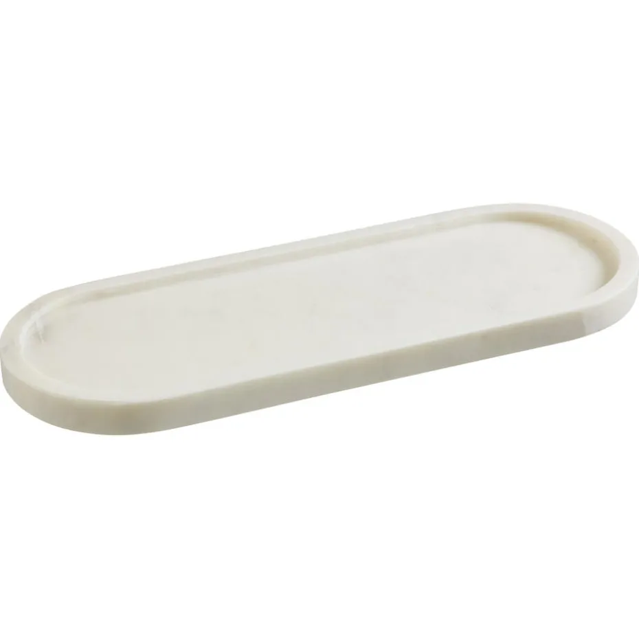Deze ovale marmeren tray in wit is perfect voor de badkamer. Ideaal voor kleine accessoires zoals zeepdispensers en andere essentials, voegt het een luxe uitstraling toe aan je ruimte. Dankzij het tijdloze design en de natuurlijke uitstraling van marmer is deze tray niet alleen functioneel, maar ook een stijlvolle toevoeging aan je badkamerinterieur.