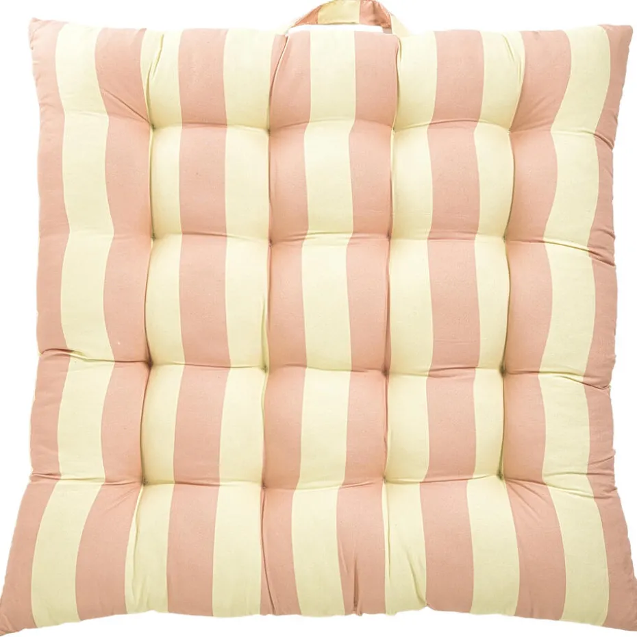 Dit grote zitkussen van 60x60x10 cm (lxbxh), is perfect om te gebruiken op de vloer of als tuinstoelkussen. Het is gemaakt van 100% polyester, wat zorgt voor een comfortabele en duurzame zitervaring. Het streep patroon in geel geeft het tuinkussen een frisse en stijlvolle uitstraling aan elke tuin of balkon. Dit veelzijdige buitenkussen biedt optimaal comfort en is ideaal voor ontspannen momenten in de buitenlucht.