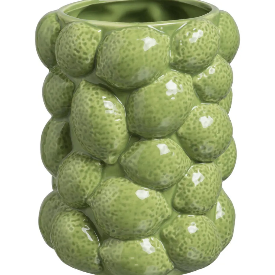 Deze moderne vaas in een warme groene tint brengt een sfeervol accent in elk interieur. Geïnspireerd door de frisse uitstraling van een citroen, straalt hij zomerse energie uit. Gemaakt van aardewerk, heeft de vaas een stijlvolle en natuurlijke uitstraling. Perfect voor bloemen of als decoratief object, een echte eyecatcher in huis.