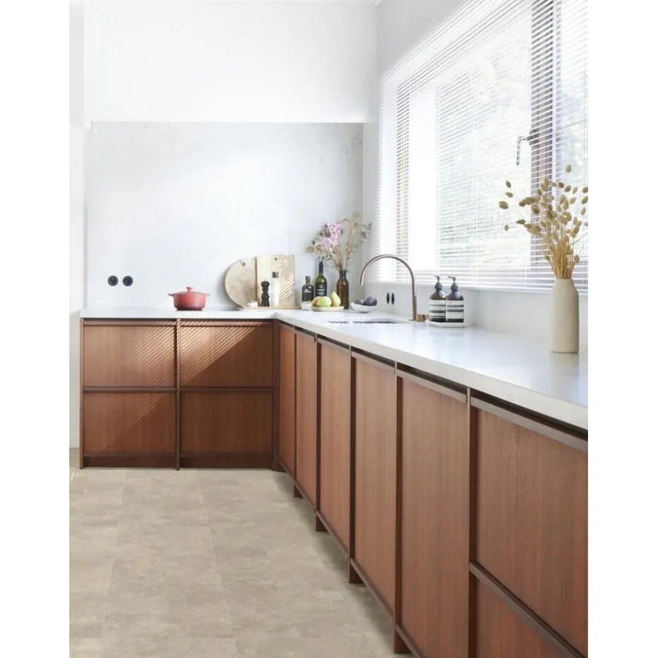 Met de Travis vinyl vloer in beige voeg je een vleugje tijdloze elegantie toe aan je interieur. Geniet van de klassieke tegel look met de voordelen van een vinyl vloer.
