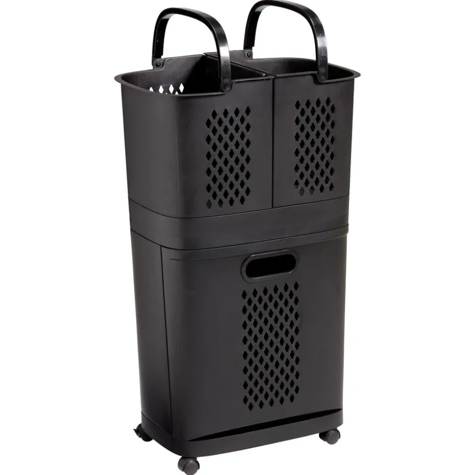 De moderne Clay wasmand is perfect voor elke huishouding. Met een totale inhoud van 70 liter en 3 vakken biedt deze stapelbare wasmand optimale organisatie. Uitgerust met twee handvatten en wieltjes, is hij eenvoudig te verplaatsen. Gemaakt van duurzaam kunststof, combineert deze wasmand functionaliteit met stijl. De bovenste twee vakken kun je er gemakkelijk afhalen door middel van de handvatten, daarnaast kun je het onderste vak erin-, en eruit schuiven of open klappen. Ideaal voor het sorteren van wasgoed, brengt de Clay wasmand orde en efficiëntie in je dagelijkse routine.